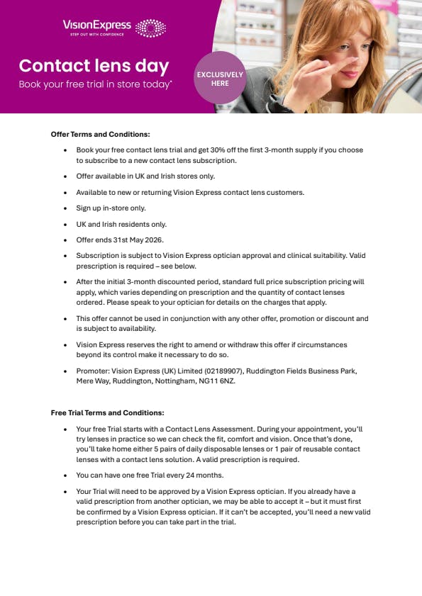 Contact Lens In Store Events Offer Terms & Conditions UniDays & February Contact Lens Offer Terms & Conditions