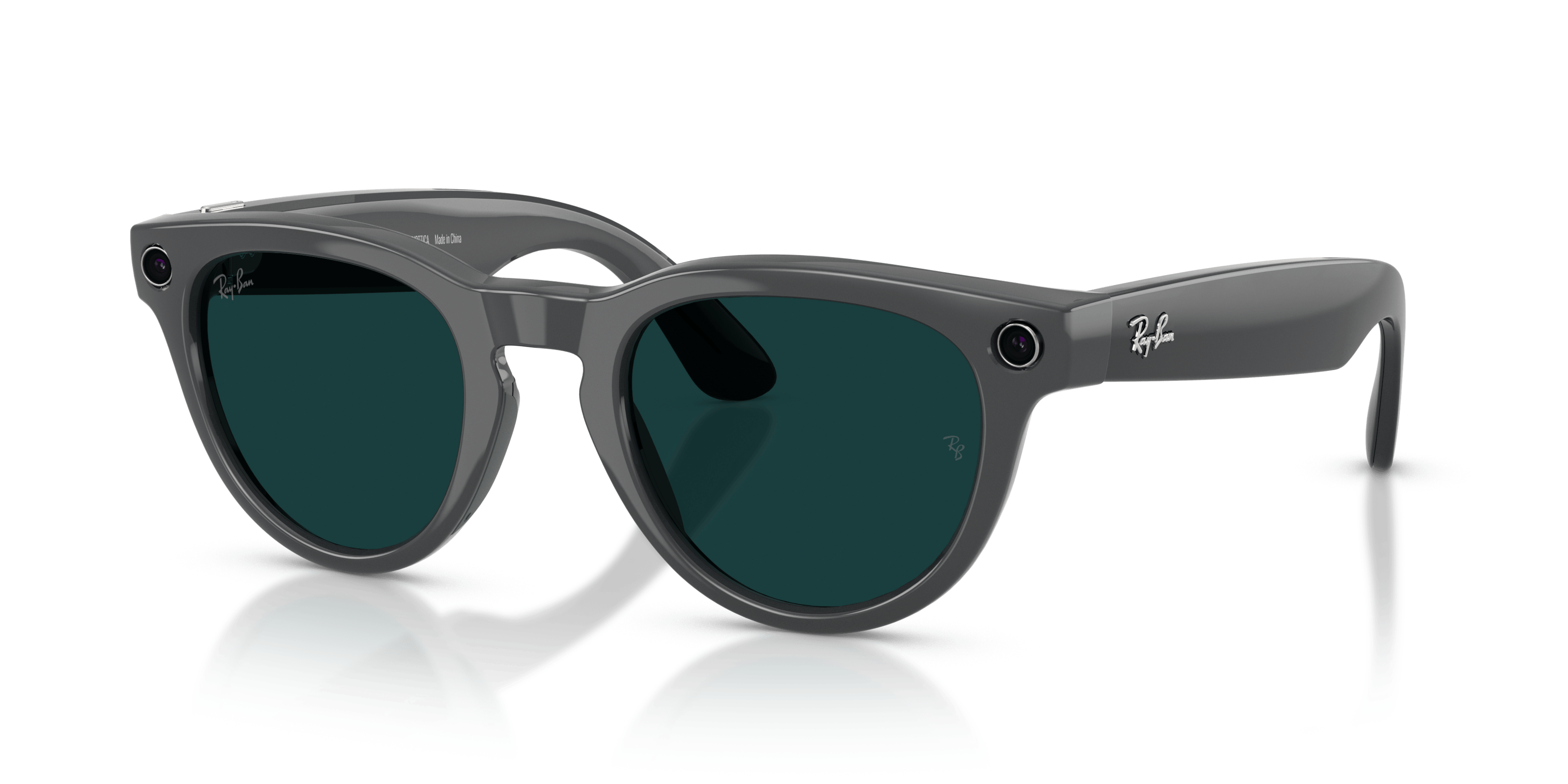 • Iconic Ray-Ban Headliner with Meta AI technology in shiny asteroid grey with Transitions® emerald lenses